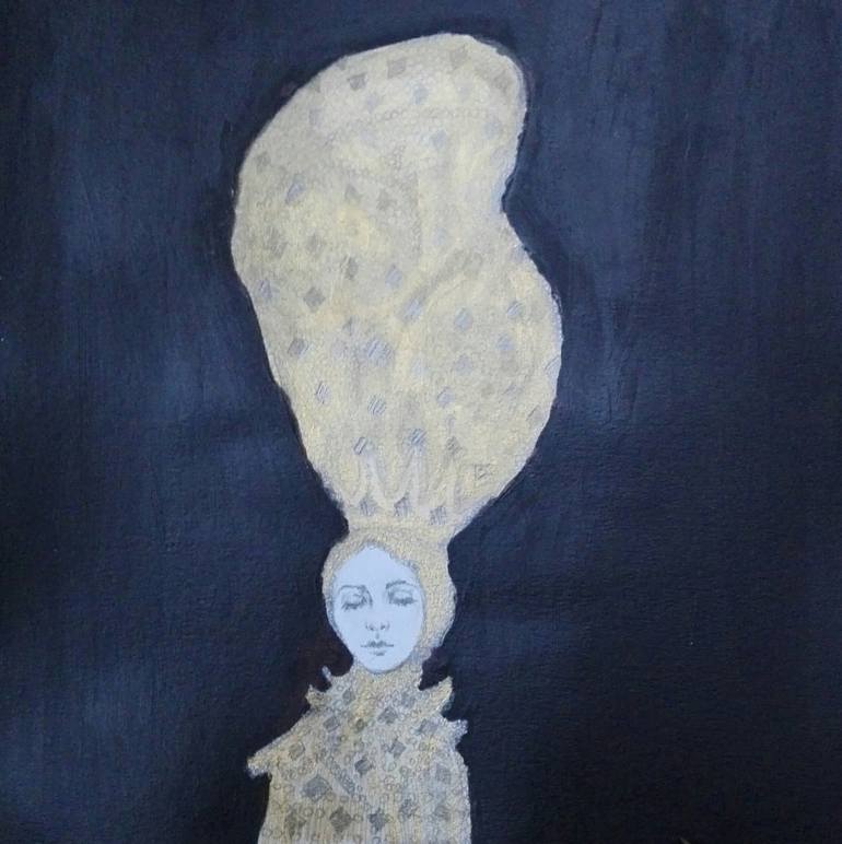 Drawing on paper,using gold for headdress and pencil .This picture is a part of my portrait series