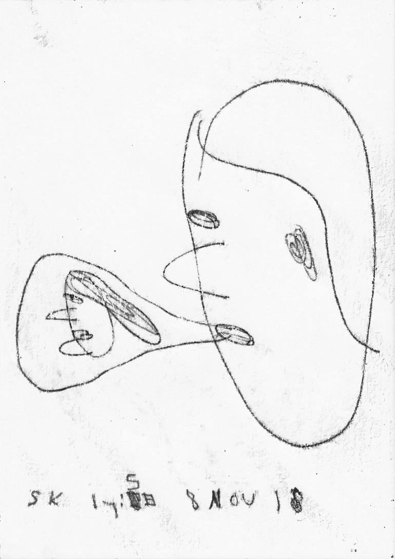 Spontaneous monotype sketch of head. Monotype printing ink on 80gsm cartridge paper. Standalone, original print. Signed by artist. Suitable for framing.
