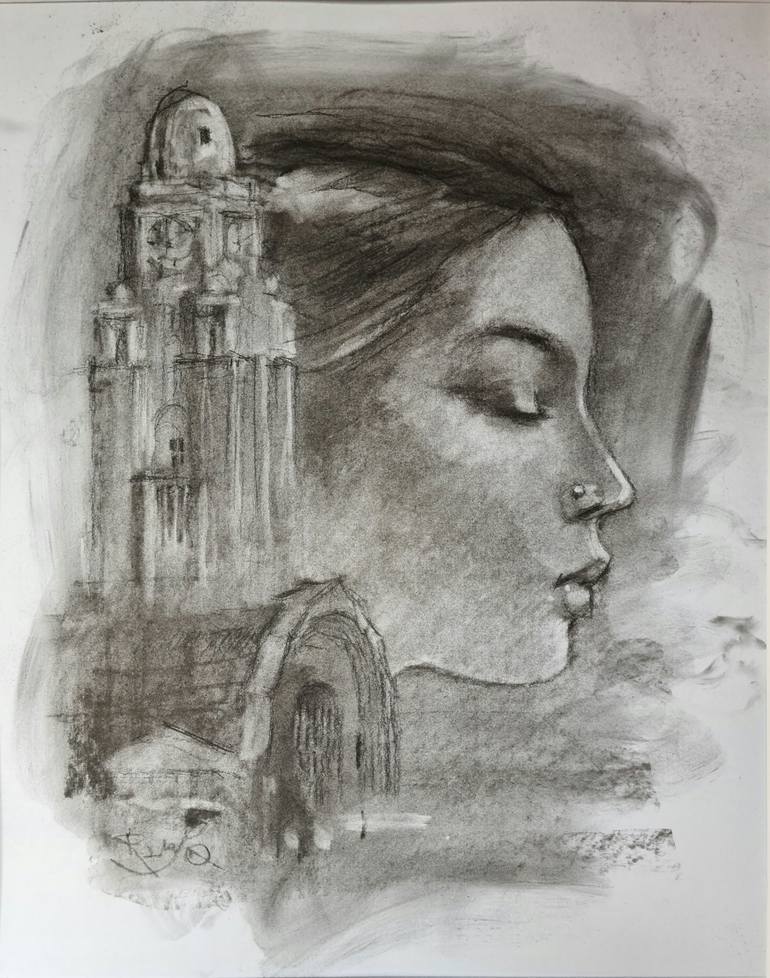 This pastel artwork depicts the Helsinki train station, with the face of a girl emerging from behind its tower, immersed in dreams of distant travels. Her gaze full of inspiration and romance, transports the viewer into a world of reverie and adventure. This image unites the architectural grandeur o...