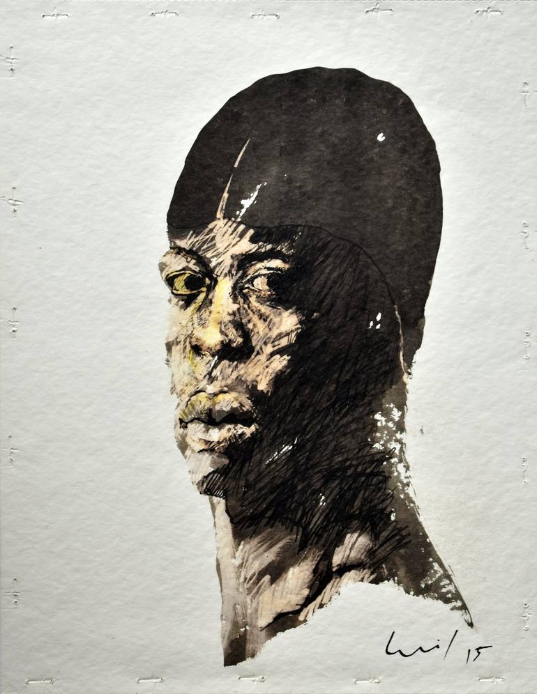 La casi totalidad de mi obra tiene como protagonista la figura humana. Esta serie investiga los rostros tensos, relajados, pero siempre concentrados de nadadores. La obra fotografica de Pierre Gonnord inspiró esta serie de 5 dibujos.