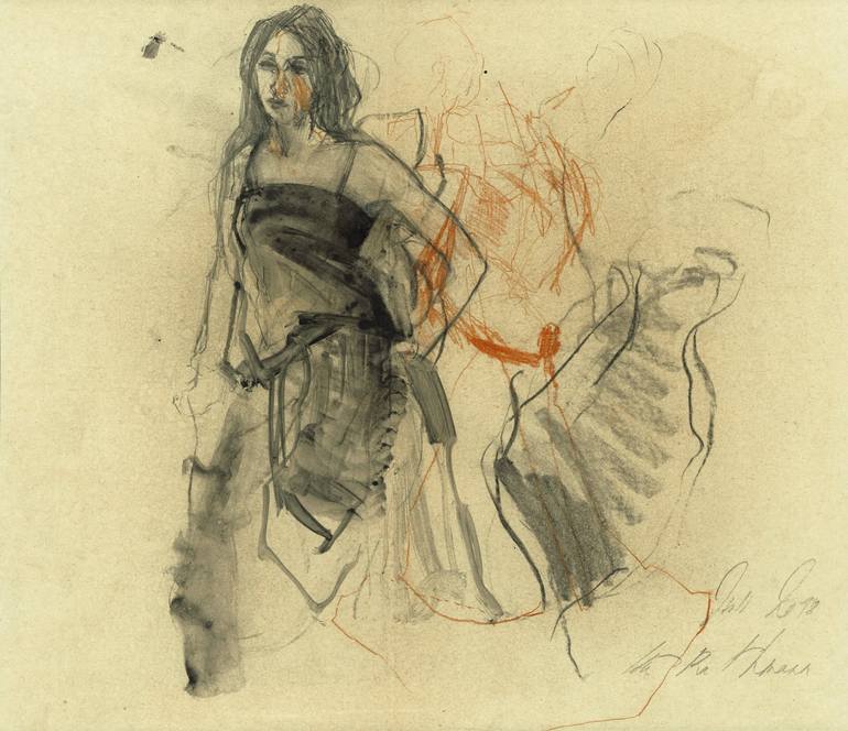 Graphite pencil, charcoal, watercolors, pastels and gouache on sketch-paper July 2018 12,3" x 14,3" (31,2 x 36,2 cm) Signed and dated on the front You will receive a Certificate of Authenticity. "Hommage à.." My medium is drawing. The human being is my motive, more specifically the human body ...