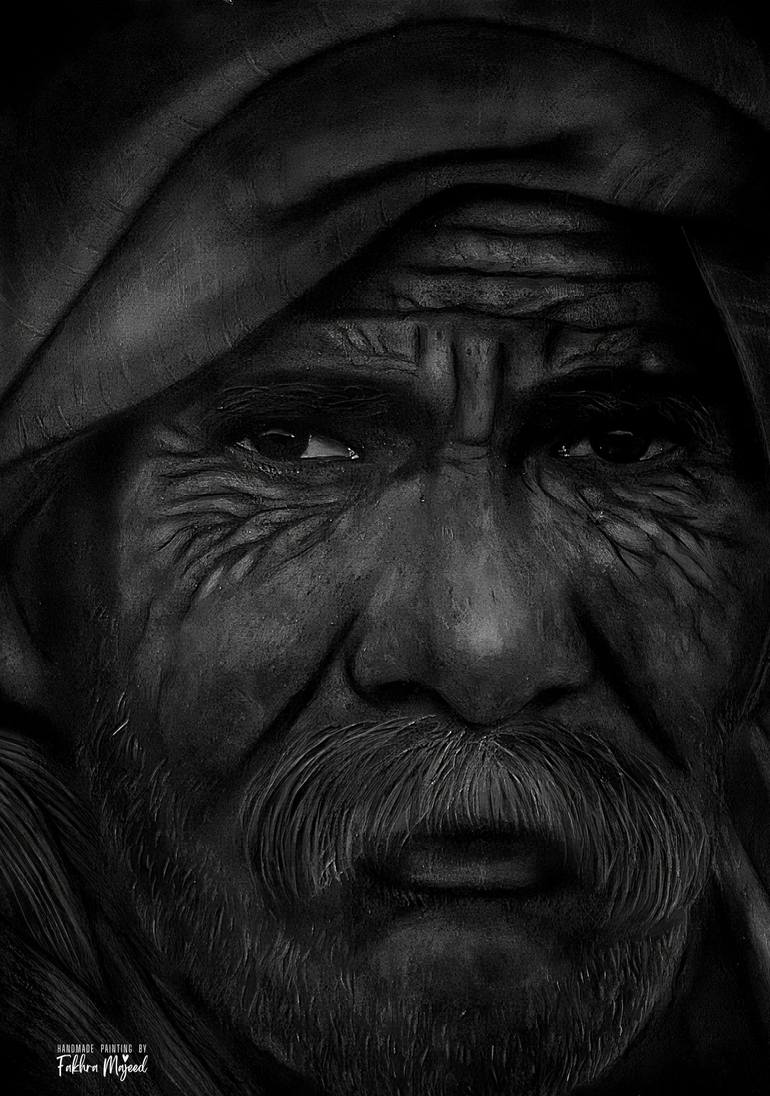 Hyper realistic sketch. Inspired by an old men . Charcoal pencil sketch.