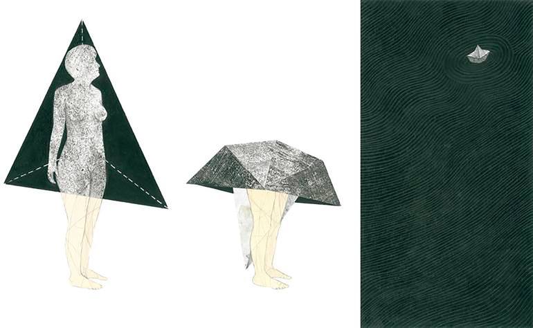 Inner journey (Italian original title: Viaggio Interiore) consists of three illustrations, a sequence of images in which a woman (portraying the self) gets lost in the depths of her thoughts until her journey transforms her into a small paper boat. Each illustration measures 20 x 30 cm and altogethe...