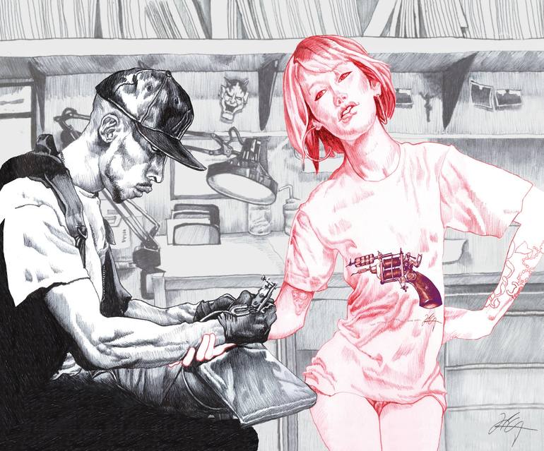 "Inked Magazine Draw Guns T-Shirt" by J.Leron Cooper Cover illustration for Inked Girls Magazine