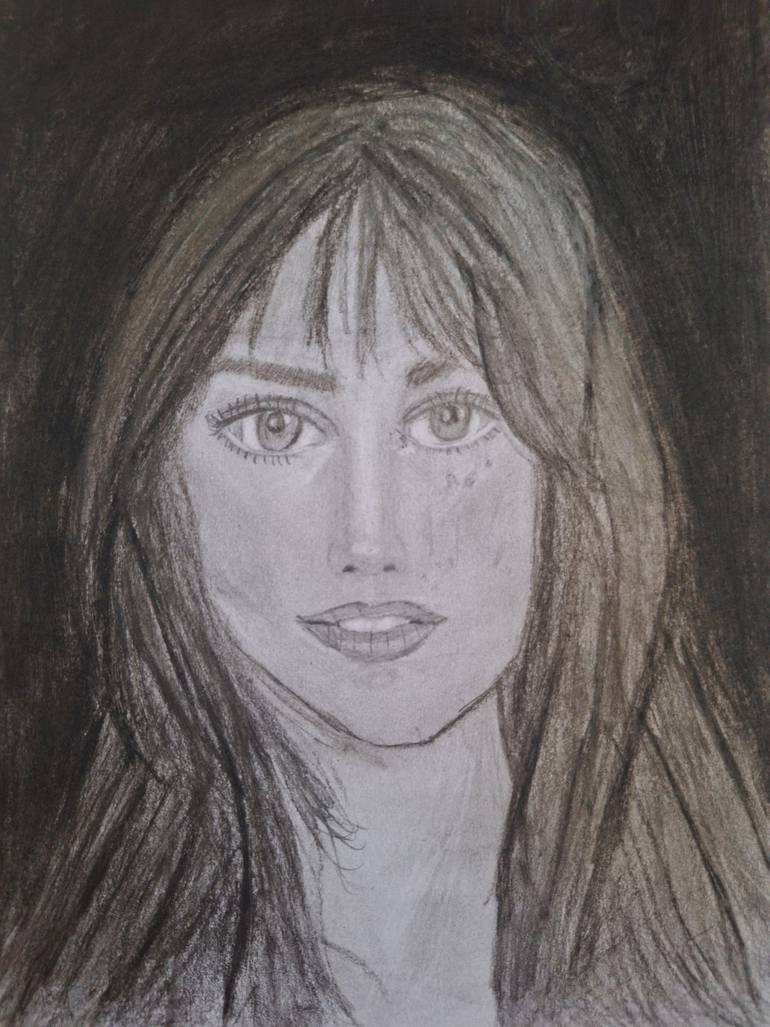 Jane Birkin was a very inspirational woman. She always had this 'je ne sais quoi' look. I draw this freehand with charcoal en pencils.