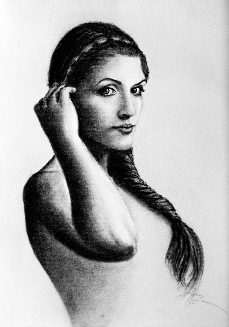 JoanaOliveira portrait, drawing with charcoal on A3 medium texture paper, 2012-11-29