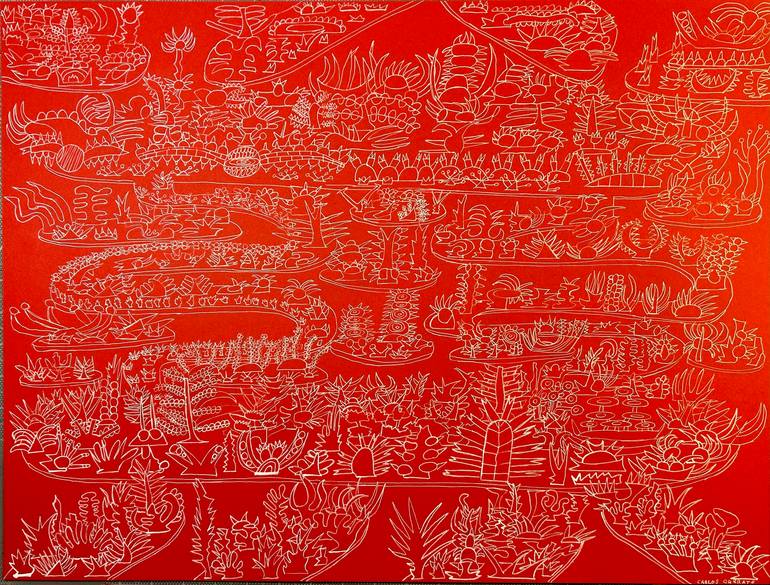 My art is an examination of otherworldly buildings and formations that create densely packed worlds that seem to be from another dimension. I find inspiration for my art in architecture from around the world. I also repurpose forms of mass communication into architecture and other objects. Different alphabets from around the world, ideograms, hieroglyphics, and even Morse code and braille inform many of my works, along with 1950s-1980s Sci-Fi art. Geysers, waterfalls, volcanos and various natural hydrological features also figure into my paintings and drawings. I typically employ the horror vacui technique, filling the entire canvas, so that viewing my work is similar to solving word search and maze puzzles and can leave viewers' eyes wandering around the canvas. I create my line drawings (that are usually monochrome) with acrylic ink markers, gel pens or technical pens. My paintings are created with a mix of different paints including acrylic, watercolor, gouache and ink(sometimes all of them on one piece).
