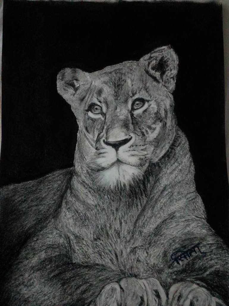 Jungle Queen... is a portrait of a lioness in charcoal on paper. I have been doing charcoal sketches of humans.... But while making this portrait of lioness, it made me realise how majestic ...and at the same time compassionate a lioness is! Especially the eyes hold so much charm, innocence and p...