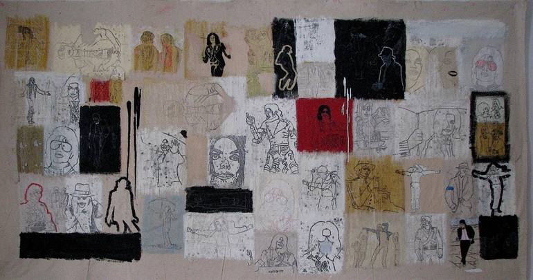 Large scale oil drawing on unstretched canvas