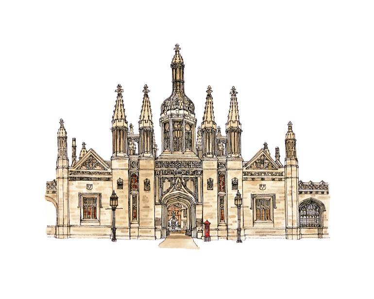 Kings College , Cambridge. Pen, Ink & Watercolours
