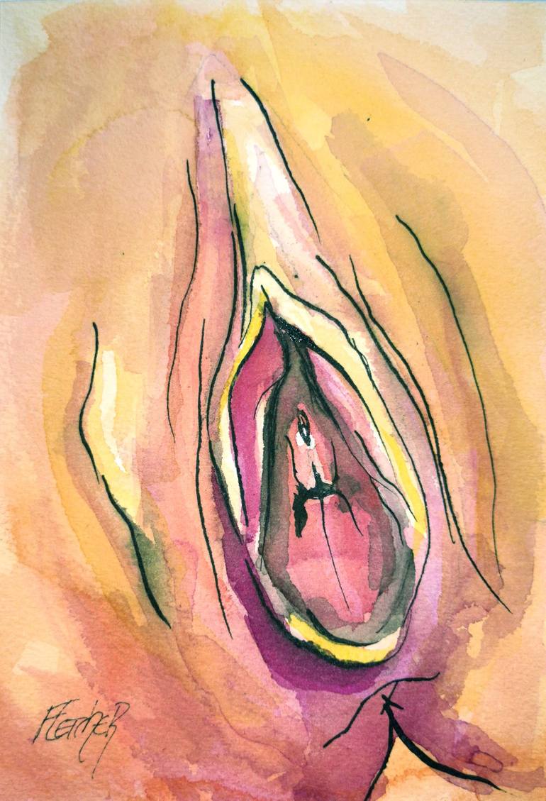 Title: L'Origine du monde Size: 5 x 7 inches Medium: Ink and acrylic ink on paper There are no two vulvas alike. I consider these vulva drawings to be portraits of the models who posed for them. These erotic drawings are intentionally fragile, intimate and personal. This kind of art comes with the ...