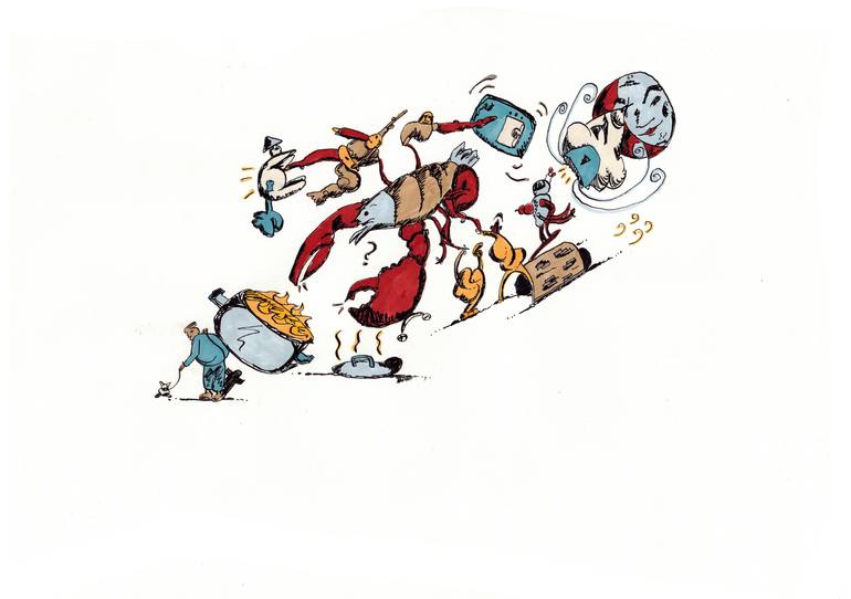 Drawn when I was craving for lobster watching "Le voyage dans la lune" by G. Méliès thinking about a ski trip.