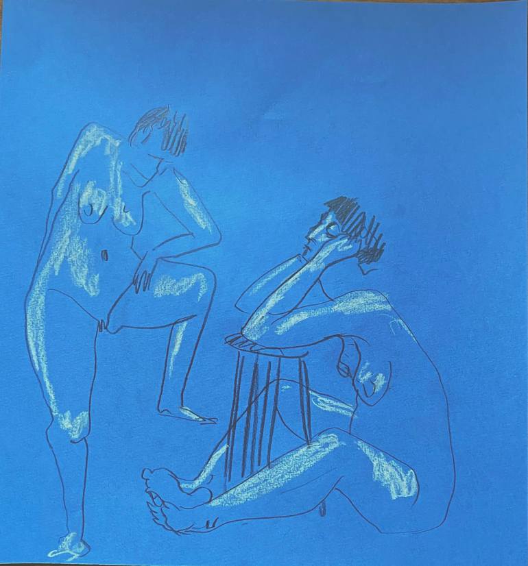 Against the serene backdrop of blue paper, sketches of the female form emerge as whispers of elegance and allure. Each stroke of the pencil embodies a delicate balance between strength and softness, as if the essence of femininity itself is brought to life on the page. The subtle interplay of light ...