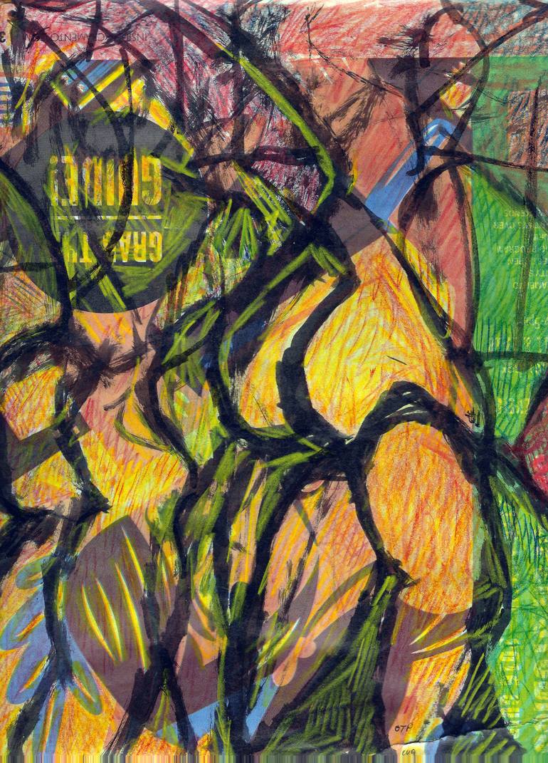 TJ Owens is mostly a self taught artist who divides his time between Sauve, France and Walnut Grove, California where he has live/work and expo space. His drawings and paintings are mostly representational landscapes and figurative compositions that straddle the line between early modernism and the neo-expressionists---- "I like to mix my medias in experimental ways ---consciously expanding the materials at hand". His early landscapes have been described as-- "bold primary colorisim"--expressed in (a)"naivete characteristic fashion". His figurative works are more often noted as ---"manifest primal tensions"---and ----"slashing constructions" ending with "images built on "extreme layers of passion and strife". What ever written "definements" are used to describe his work---he appears to work generally on an "intuitive level"---- ---"there are some brief moments of recognizable cognition and at much fewer times---- forethought" His experimental approach of mixing and remixing materials/mediums continue to repeat themselves infinitely-----"morphing from one form/stage to another". TJ's raw authentic validations of his emotional, spiritual and intellectual happenings proliferate continually. "I seek to maintain a personal self satisfying mood or zone between cooperation/function and process----perhaps a very selfish motivation".