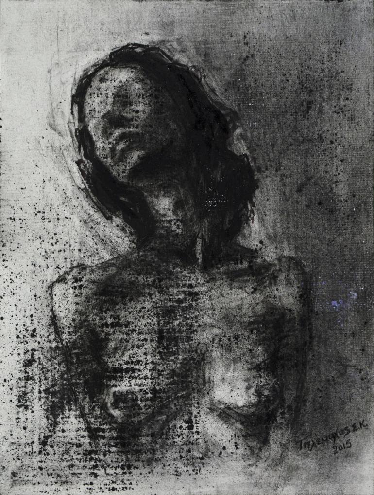 Charcoal on paper, 31 x 23cm. Athens 2015, Lena from Dodona standing naked.. Accompanied by Certificate of Authenticity