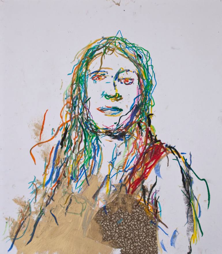 oil pastel, fabric, acrylic on paper. series of drawings of my favourite pscyhe-folk women artists : Alela Diane
