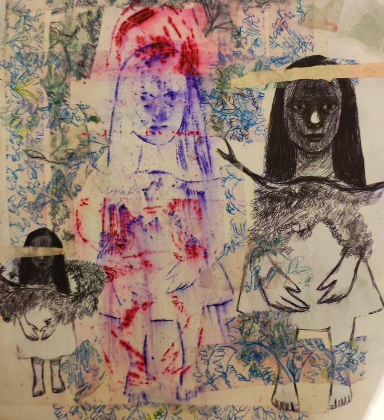 This work of art is a collage composed with drawing .