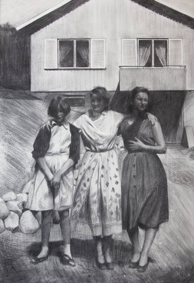 Les trois filles | Charcoal on canvas, 130x89cm. | 2011