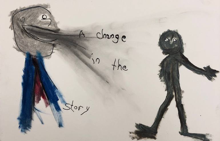 Sometimes the story changes Ink, chalks and pastels on paperboard.