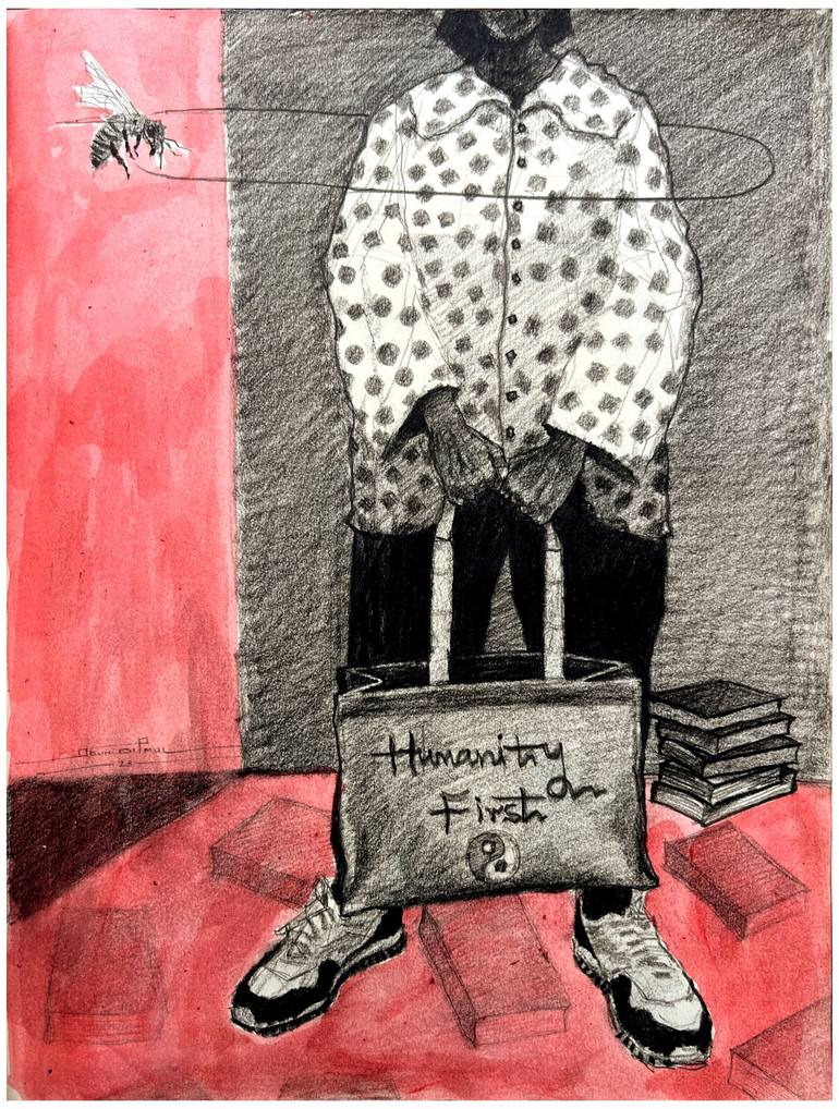 My works are description of known souls that's locked inside everyone of us. They are layout of some obvious or hidden realities of human existence, as it pertains to daily living. My Narratives are inspired by the wisdom from the Yoruba Adages, and revolve around love, mental health, hope, betrayal, faith, romance, fashion, and encouragement of more kindness in the world. Things I believe can be experienced by everyone in the world, no matter their positions, status or location. The tempera and wash painting techniques are what I use in creating my pieces and collaging of newspaper prints are Paramount in my painting, to convey hidden narrations behind the experiences of each subject I am treating at every point in time With my works, I tend to focus on the feet upward, Providing a multiplicity of narratives for my audience to explore my metaphorical, ambiguous canvases oscillate between a sense of peace and abandonment, faith, tenuous hope. Forced into becoming voyeur, the viewer soon becomes the off-screen protagonist of a scene that is left for him or her to interpret. With my works, I deploy an invasive process to engage my audience: carefully framing my compositions to avoid representing faces, I focus instead on my characters’ feet and legs, as a metaphor in creating rich evocative narrations as a “mediums of shared identities" I aspire for my viewers to perceive my art as a gateway to deeper comprehension of individuals and their multifaceted nature, as well as a mirror through which they can gain insight into their own selves. I want to instill in people a heightened awareness of the complexities inherent in every person, the duality of their character, and the unique set of life experiences that shape their responses to others and the world around them. By engaging with my pieces, I hope viewers will embark on a journey of self-reflection, prompting them to consider their own place in the grand tapestry of existence and to embrace life's realities with renewed vigor and empathy.