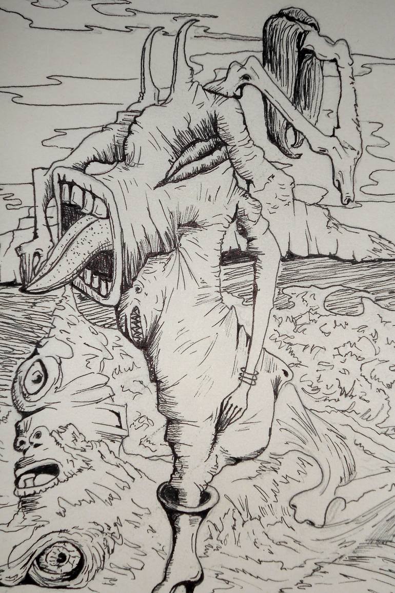 Based out of a modest home studio in New York, De Yos is a Painter, and Draughtsman, whose work deals primarily in the chaotic flux that is Human Nature. His work explores the tensions between this element and, technology, superstition, the family unit dynamic, and lastly, what he has come to term as ' The myth of progress'. Much of the time the work is laced with a strong personal aspect, and in style is quite expressive. Now in his mid fifties, De Yos has wielded some sort of mark making implement in his hand as far back as his memory will take him. Although he has had some formal technical instruction-much of it through books and literature- De Yos is mostly a self taught painter, yet, one well versed in all aspects of the history of Art. He often draws upon this breadth of knowledge in the creation of his varied style of works.