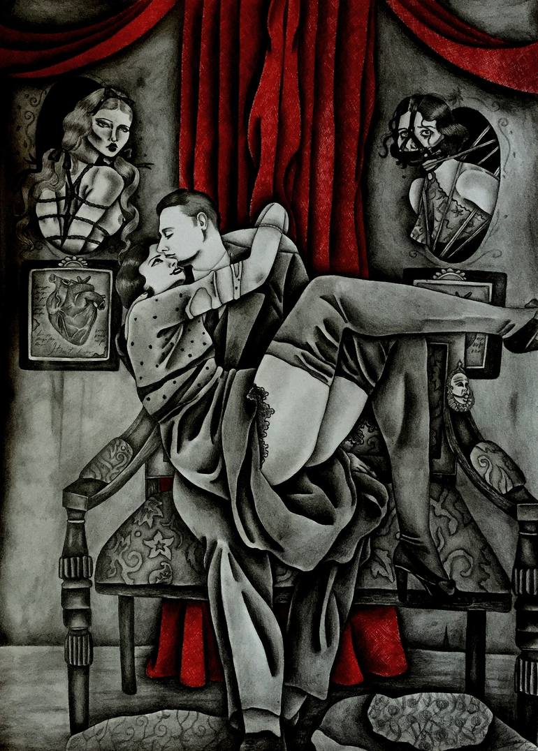 Black pencils and red ballpoint pen on paper sheet Sizes: 50X35CM Serie: Onírica This drawing belongs to my series of erotic and dark drawings Onírica.