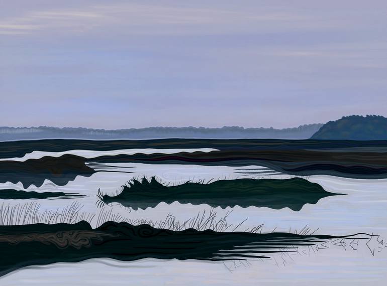This image is drawn by hand on an iPad with an Apple Pencil and is beautifully printed with archival pigment ink on fine art paper. I will only make one print of this image. It depicts the tidal marsh of the Low Country of South Carolina at dawn.