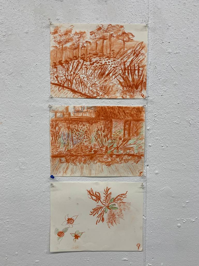'Lurie Garden' plein-air drawing and painting paint-put project. Oil pastels and charcoal on paper 3:2. Fall 2022 Core Practice Class - School of The Art Institute of Chicago