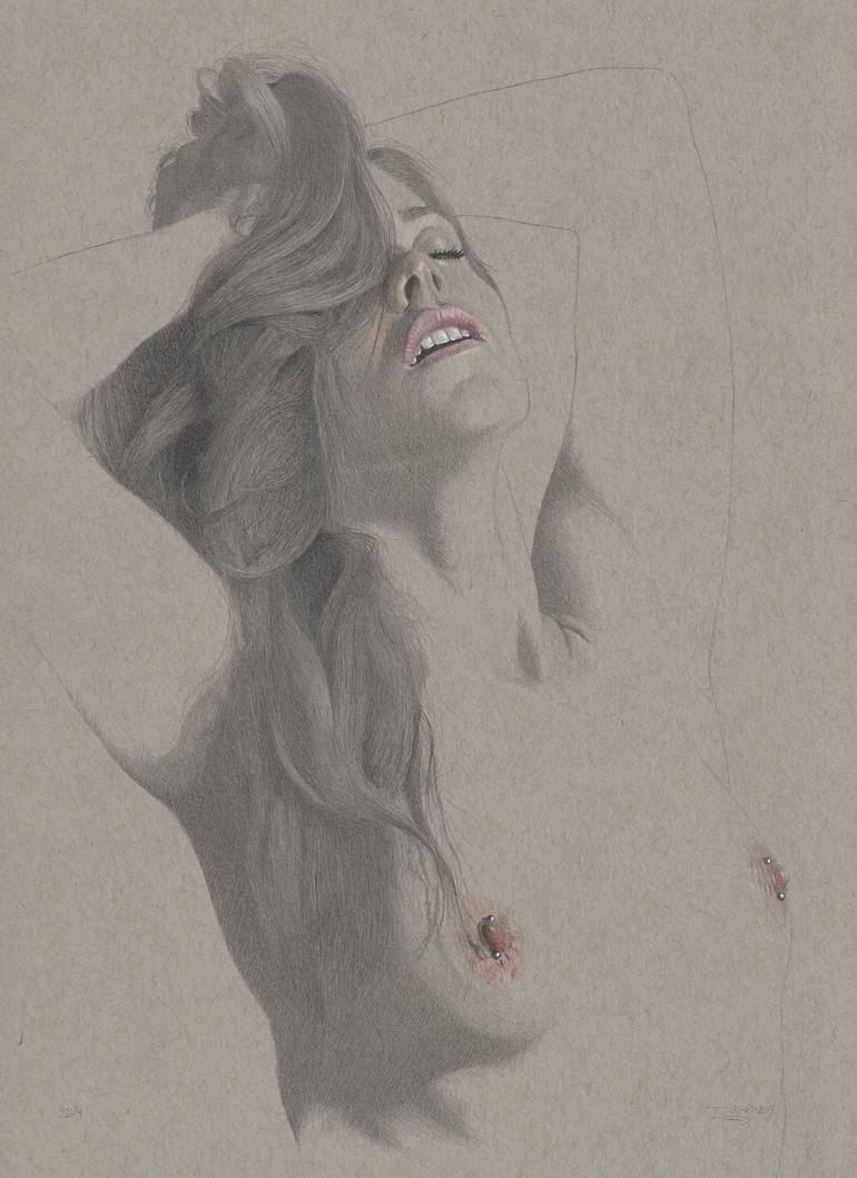 Pleasure of living... I love her hair: long,curly and thick. Months,years are needed to growing... Drawing is on grey toned Strathmore cardboard