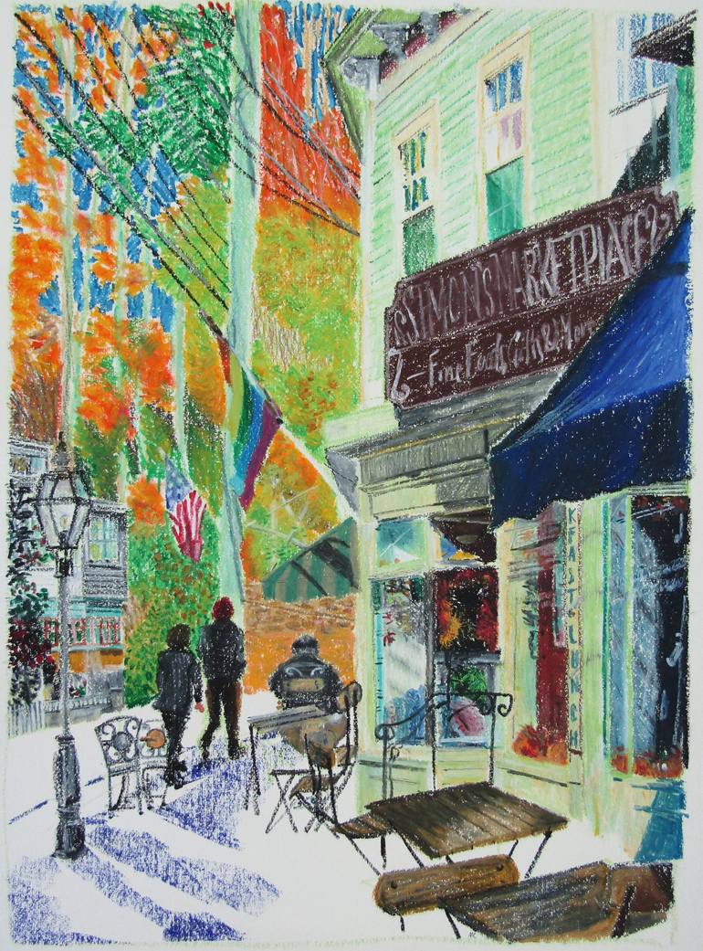 "Mary Cinque is an Italian painter, graphic designer and blogger working and living in the Amalfi Coast. Her works – joyful, bright, colourful painting and drawings – are inspired by this place, as well as her heritage, background and travels. Mary spent her childhood between Italy and Ethiopia. Before moving back to the Amalfi Coast in 2019, she has lived in Naples and Milan, where she attended academies of fine art; and Philadelphia, New York and London where she improved her artistic skills and style. Alongside making art, she works as an illustrator and graphic designer, collaborating with selected brands, working on artistic commissions such as illustrations, labels and showroom design. Cinque’s art develops themes connected with what makes us essentially humans: our habitat – the buildings, the streets, the cities – our bodies, what we eat and how we socialise. Art, in Mary’s paintings, becomes a powerful instrument of philosophical investigation which reveals who we really are by questioning our habits, observing those characteristic traits we share as a species, often without realising it. The artist looks at human beings from a different perspective, making interesting and significant what can seem normal or banal to us in our everyday life: the buildings that populate our cities, the streets we walk, people sitting across our table at a café, strangers on the bus. In this nutshell interview by Giulia Corti, Mary Cinque explores some of the most relevant aspects of her art and reflects on how it offers an intriguing and informative perspective about the way we live as human animals. Mary, your art is colourful and vivid, it mixes human and urban subjects by making use of various techniques (oil painting; pastel drawing, markers, “digital” drawing, print-making etc.) and materials (canvasses, magazine pages, an I-pad screen). How do you choose the means with which to develop an artwork and how do the different materials and techniques influence what you want to convey, if they do? Different subjects call for different techniques. Buildings and urbanscape are always acrylic on canvas, while I prefer to depict people using a quicker, immediate approach, like the one that I can get with markers and oil pastels or digital painting. By looking at the main themes of your art, it is possible to notice what seems to be a tension. On one hand, you portrayed the stillness and artificiality of urban landscapes and buildings (e.g.