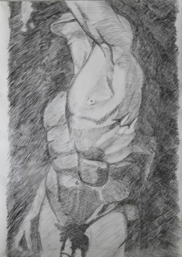 Male nude 2 is charcoal drawing/study, finished of with brushstrokes (and water) to give that linear effect but also to fix the charcoal onto the paper. The artwork is earlier work and in good conditions but may contain little imperfections. Ideal to be framed. Signed on the bottom right side.