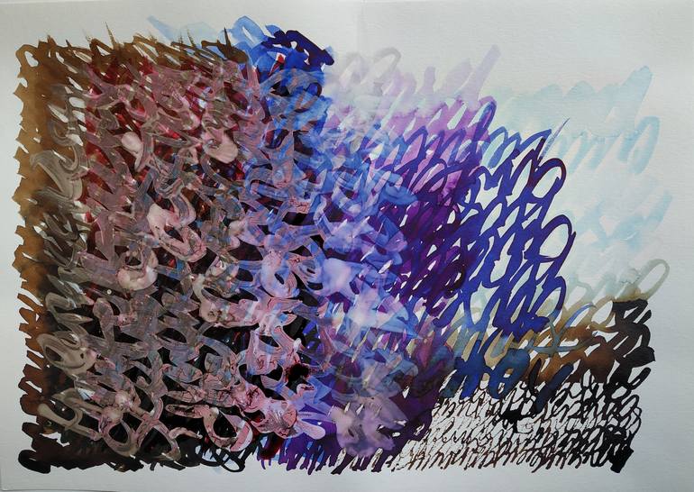 Manuscript In this series of drawings titled “Manuscript”, one sentence is rewritten overlapping and annuling the previously written, without space and pause, in the given format, in a special time interval which is then established and leaving behind the rhythmic trace as a consequence of the proc...