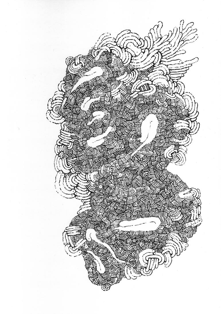 A friend of mine said one day that my art felt like a "gut", and I found this sounded right. My approach is responsive, and goes through a number of tortuous paths, infinite ones, I hope. My black & white visuals are alive, wave-like, extraordinary… I draw with a brush marker on paper, with no sketching beforehand, since I want my instincts to be revealed gradually. I draw as I feel the momentum, my vision comes from inside, and there is no subject, nor real object whatsoever. I look forward to inventing a form that only exists in my world. I want to reveal the intimate, the hidden, a part of my truth that remains invisible. I need to improvise, in order to go from surprises to suspended moments. Being my first audience, watching the composition evolving, at every stage of the performance. Till the very end of this process, or till that moment when I no longer know for sure what to do, till the feeling "it is all done already", this is where I consider my creation is completed. My ambition is to draw the hidden face of humanity.