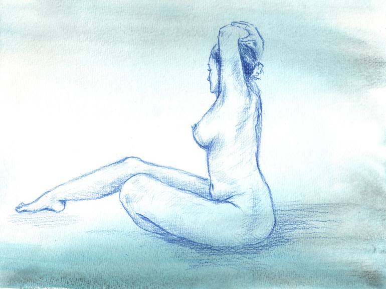 This evocative piece captures the fleeting vulnerability of the human form, blending soft watercolor tones with intricate pencil details. The background, crafted with delicate washes of watercolor, creates an ethereal, almost dreamlike atmosphere, allowing the figure to emerge from the page with bot...