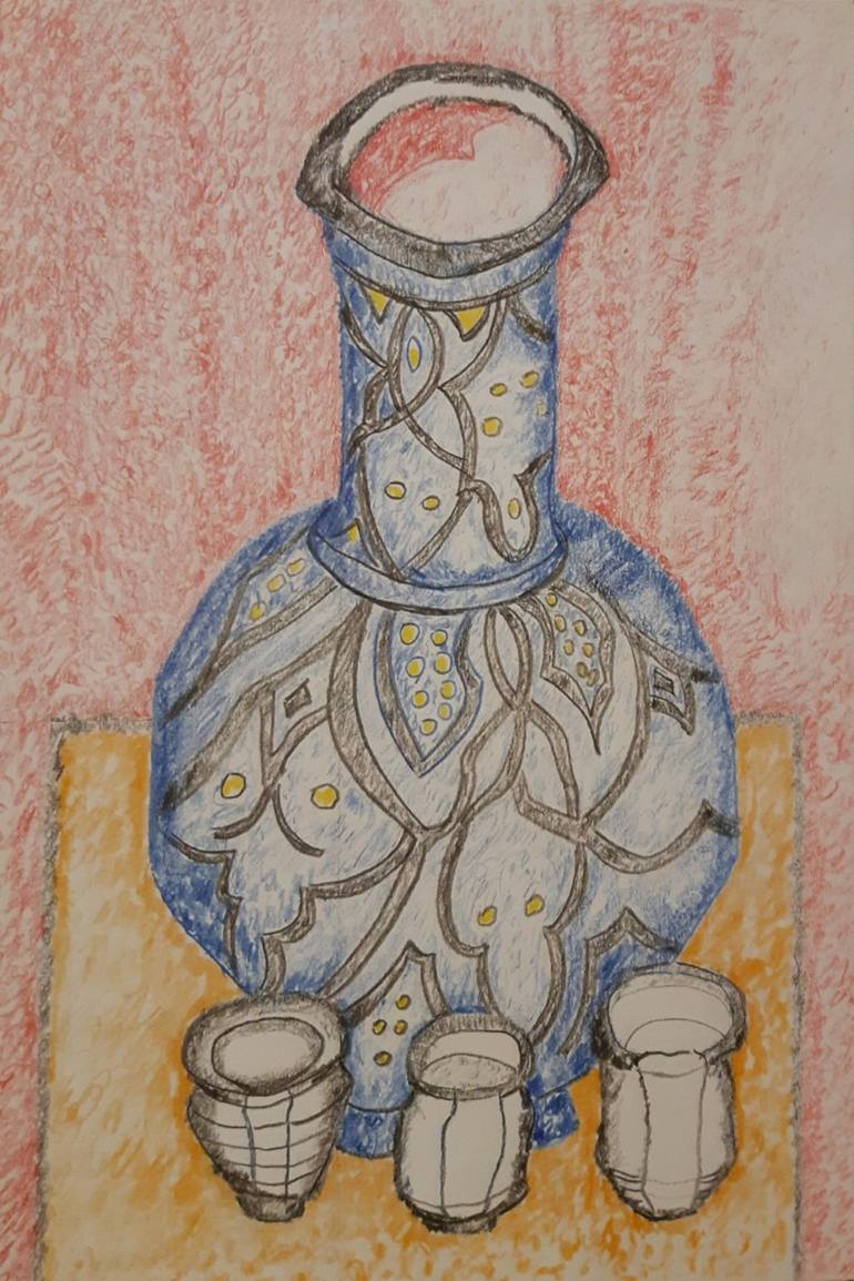 Moroccan Vase and 3 white against white pots II Moroccan Vase and 3 white against white pots II