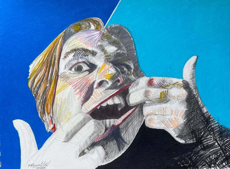 I have tried to select colour and put it on my face were it would further enhance the drawing. I attempted to do a more exaggerated and severe expression on my face.
