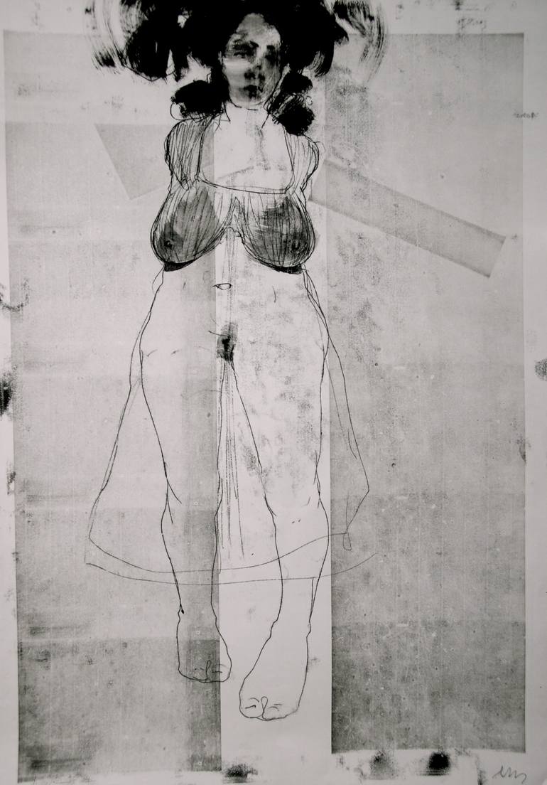black ink monotype and drawing on 110g flyleaf paper, one of a kind
