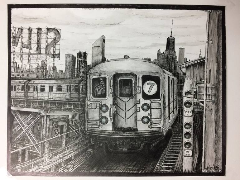 NYC 7 Train. This was from an image I saw online. I love the bend of the train as it pulls into the station.
