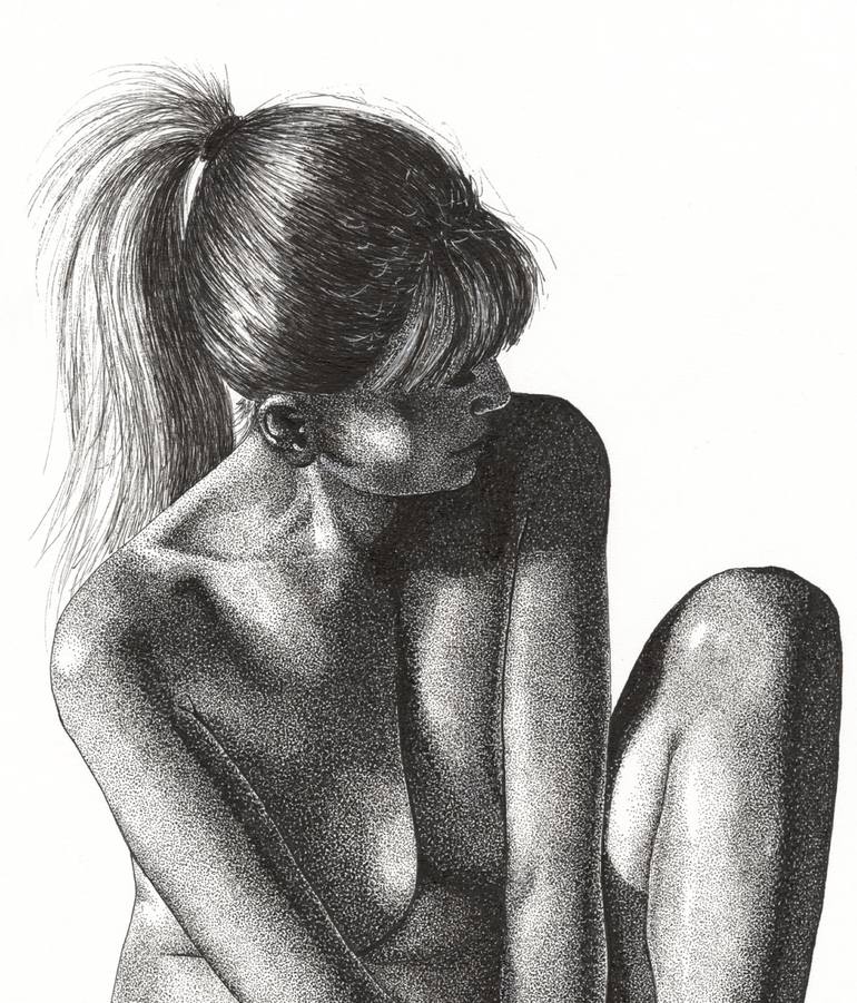 I find a lot of inspiration in the shapes of the female body, in the tones and shadows that emphasize them. In the memories and dreams they whisper about. The technique is pointillism.