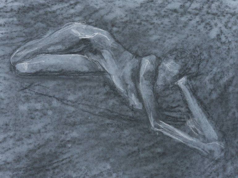Charcoal and chalk drawing of nude woman on archival, acid-free 100% cotton laid paper.