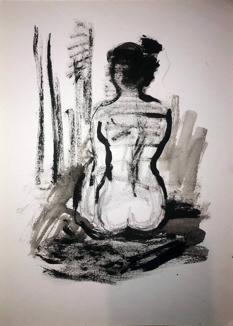 This is a study of the female body, aiming to capture the movement and atmosphere. The technique i used is ink on paper in rapid, expressive movements.