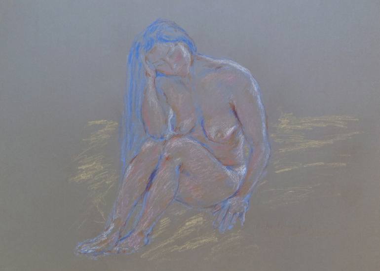 Realized in pastel on paper from life sitting pose.