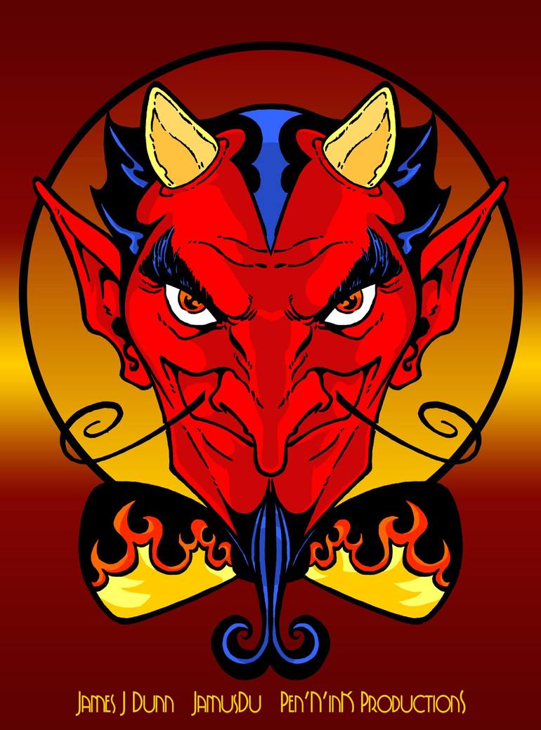 Old Scratch pencil, ink, paper. Digital colour. Created, owned and copyright James J Dunn and Pen'N'inK ProductionS.