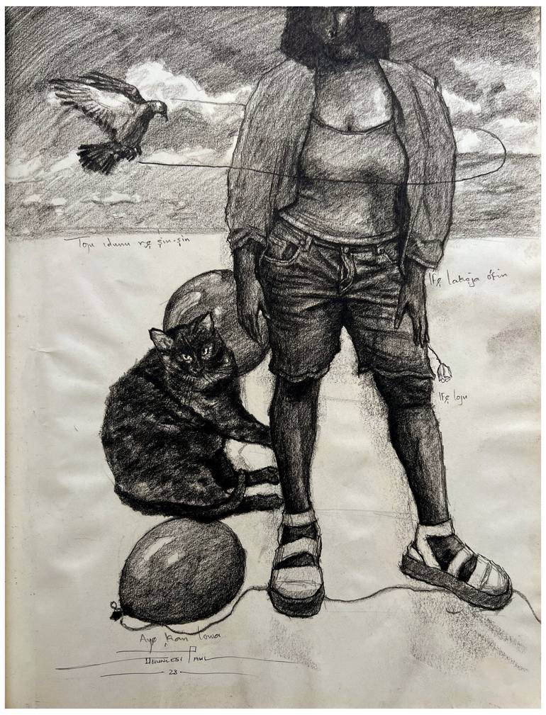 My works are description of known souls that's locked inside everyone of us. They are layout of some obvious or hidden realities of human existence, as it pertains to daily living. My Narratives are inspired by the wisdom from the Yoruba Adages, and revolve around love, mental health, hope, betrayal, faith, romance, fashion, and encouragement of more kindness in the world. Things I believe can be experienced by everyone in the world, no matter their positions, status or location. The tempera and wash painting techniques are what I use in creating my pieces and collaging of newspaper prints are Paramount in my painting, to convey hidden narrations behind the experiences of each subject I am treating at every point in time With my works, I tend to focus on the feet upward, Providing a multiplicity of narratives for my audience to explore my metaphorical, ambiguous canvases oscillate between a sense of peace and abandonment, faith, tenuous hope. Forced into becoming voyeur, the viewer soon becomes the off-screen protagonist of a scene that is left for him or her to interpret. With my works, I deploy an invasive process to engage my audience: carefully framing my compositions to avoid representing faces, I focus instead on my characters’ feet and legs, as a metaphor in creating rich evocative narrations as a “mediums of shared identities" I aspire for my viewers to perceive my art as a gateway to deeper comprehension of individuals and their multifaceted nature, as well as a mirror through which they can gain insight into their own selves. I want to instill in people a heightened awareness of the complexities inherent in every person, the duality of their character, and the unique set of life experiences that shape their responses to others and the world around them. By engaging with my pieces, I hope viewers will embark on a journey of self-reflection, prompting them to consider their own place in the grand tapestry of existence and to embrace life's realities with renewed vigor and empathy.