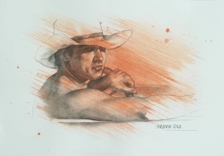 In the past, I have created a lot of sketches about western cowboys and nude,especially men. Drawing on paper ( 160g ) This drawing is unstretched and unframed for selling. All works are copyrighted and all rights are reserved by the artist.