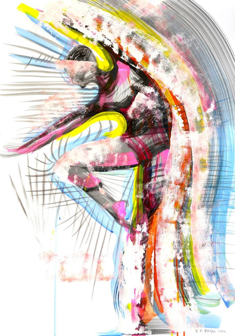 I am inspired by the movements and energy of the dancing people. Viewers will see and feel the efects of liberation with body and soul. Ink and acrilyc on the paper gives incredibly beautiful efects.