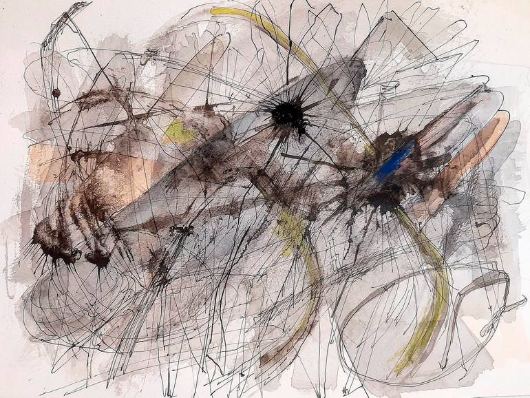 This work, and the complete series, was conceived, from the anguish produced by fear and the confinement of the quarantine by COVID 19. These lines and spots are the symbol of the only freedom that could have, and simply let it hand flowed freely through an imaginary territory that existed on paper ...