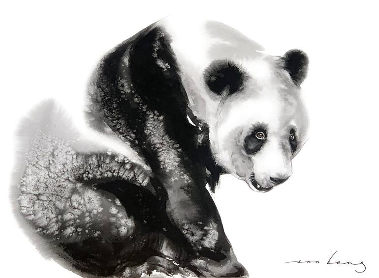 The enchanting look of this panda is a mesmerising pleasure to behold. Ink on Saunders Waterford 300gsm smooth cotton paper. Photo reference from Dimhou-pixabay.