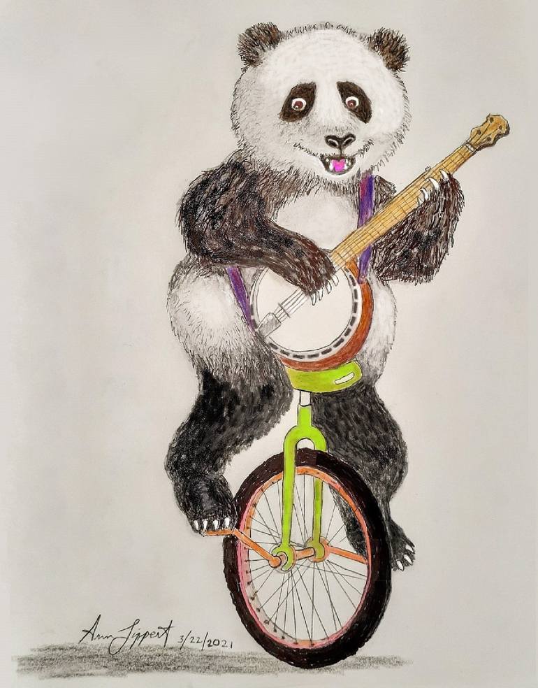 I have seen drawings of animals playing instruments. But I've never seen a Panda on a Unicycle playing the Banjo. And now one exists.