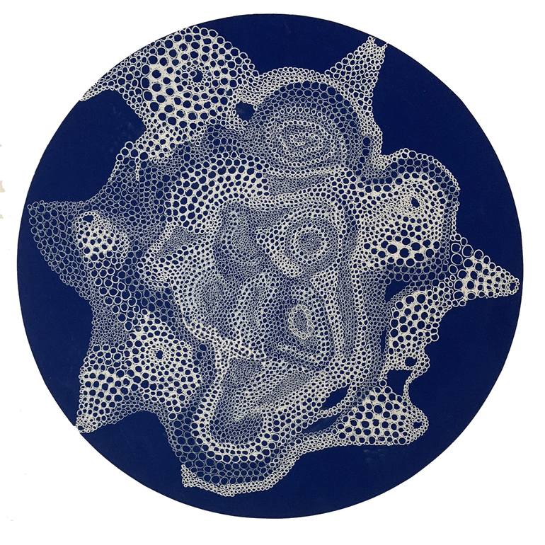 This piece continues my interest in imagined fantastical forms, created from the repetition of circular marks that take shape as cellular entities - reminiscent of biomorphic deep sea or space. They are made on Chinese calligraphy paper and informed by my experience as artist in residence in China.